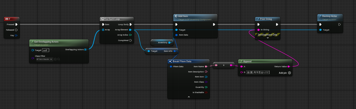 다음에는 획득한 아이템이 인벤토리에 들어오는 작업을 수행하려고 합니다.