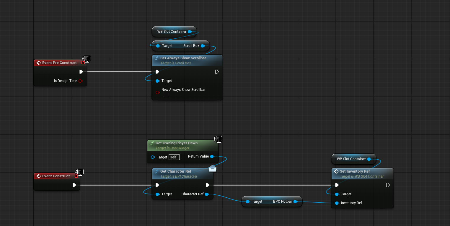 디자이너 설명은 건너뛰었지만 둘 다 간단하게 만들어서 기존에 만들었던 WB_Inventory와 WB_Slot Container 와 상호작용하는 구조이다.